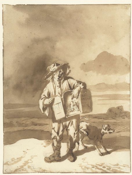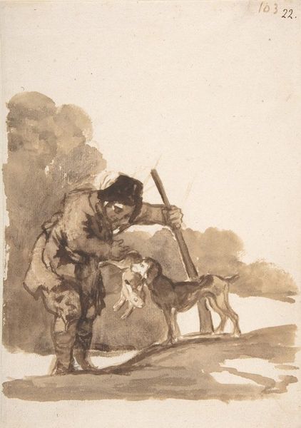 Curator: This is Francisco de Goya’s *The Snowstorm (Winter)*, painted in 1787, here at the Museo del Prado. Editor: Visually, it’s bleak—a scene dominated by cool blues and grays. The visible brushstrokes give the sense of movement, mimicking the harsh conditions. It certainly makes you feel cold just looking at it! Curator: Indeed. Goya painted this work as a tapestry cartoon, a design intended to be woven into a tapestry for the royal palace of El Pardo. The subject matter reflects the everyday challenges faced by the peasantry. Notice how Goya doesn't idealize rural life. Instead, he presents a harsh reality of hardship. Editor: Absolutely. Look at the way the figures huddle together for warmth, their faces etched with what seems like despair. There’s a weightiness to the scene – a sense of struggle conveyed through the composition. Curator: Precisely. Consider also that genre paintings such as these served a dual purpose: to decorate and to remind the royal family of the plight of their subjects. The figures wrapped in cloth, the laden donkey—all archetypes of rural life—underscore the social dynamics of the time. Editor: You mentioned the laden donkey and for me that animal is more than just a feature of rural life: it's like an allegorical symbol of the crushing burden endured by ordinary people. Curator: I like that, very insightful. And while the storm rages, the presence of the family dog introduces loyalty, yet perhaps, more vulnerability amidst the relentless environment. The symbol of this domestic animal speaks to both comfort and fragility. Editor: Looking at the palette, you know, even though the work depicts cold and suffering, there’s beauty in the chromatic choices and painterly skill of this wintery landscape. The textures—from the snow to the fabric—are so well rendered. Curator: Yes, even the leafless tree is emblematic; standing starkly in the blustery sky, the tree visualizes themes of endurance and stoicism amid seasonal transformation, as if the human spirit, much like that bare tree, remains resilient through the vicissitudes of existence. Editor: The longer you consider the painting, the more its intricate nuances really come to life. Curator: That’s right—it is a visual meditation, reflecting on seasonal rhythms and also of socio-economic challenges, where viewers gain appreciation and discover a profoundness that can offer a deep, rewarding art experience.
