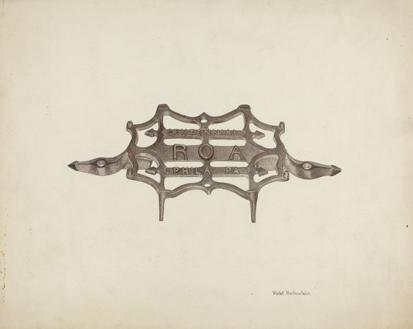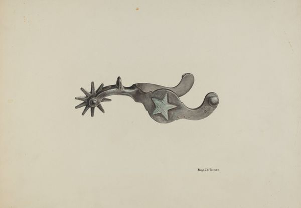 Curator: This drawing, simply titled "Spur," was created by Robert W.R. Taylor around 1940. It offers a realistic depiction of a single, antique metal spur. Editor: My first thought is its stillness—a kind of expectant waiting. The texture feels incredibly tactile. What can you tell me about the materials at play here? Curator: We believe this piece is a straightforward drawing, likely with graphite and perhaps some chalk. It's remarkable how Taylor uses shading to give the metal a palpable weight. I read the spur as a symbol of domination. Its connection to labor exploitation within broader agricultural industries, along with a legacy steeped in cultural ideas of rugged individualism, evokes strong emotions, doesn’t it? Editor: Yes, definitely the materiality speaks to exploitation. I'm drawn to how a drawing renders what is typically a cold, hard metal object almost domestic—displayed against that neutral, almost bleached ground. You sense that it could exist as much on the page as on the rancher’s boot. What’s its relevance to Realism? Curator: Realism is concerned with portraying subject matter truthfully, and I see how Taylor accomplishes that here. Consider the detail in rendering rust marks—details are unglamorized, a common visual language and technique in academic circles that is taken to task during modernity with a deliberate reorientation against this perspective in artmaking. But in a larger sense I ask, who is the artwork in service of—whose truth does the artist prioritize here, considering these class and gender biases? Editor: Interesting. But there is a compelling relationship at play that challenges expectations of craft as inferior—considering Taylor’s ability with fairly simple tools. How does this contrast of materials shape one's reading of cowboyism’s hypermasculine archetype? Curator: Precisely—through careful study, Realism makes an honest gesture to create social commentary by calling out issues that might have existed throughout the history of art up to Taylor's artistic practice and in present-day readings too. That very archetype gets complicated because there are class struggles embedded in these practices of domination! Editor: Yes! By elevating the labor it depends on, the drawing becomes, quite paradoxically, revolutionary—don’t you think? I find my perception shifting, just discussing it. Curator: And by examining those processes, it can really shape our understandings and perceptions of labor practices from the cowboy’s to the farmworker’s to the artisan’s handiwork today.