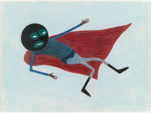 Editor: This is Laylah Ali's "Untitled (Superman)," and I find its cartoonish style and falling figure simultaneously humorous and unsettling. What do you see in this piece? Curator: It makes me think about the ways in which superheroes, often symbols of power and justice, can also be read as figures of oppression or failed saviors, especially when viewed through the lens of racial identity and political power. Editor: I hadn't considered that. The black mask certainly changes the dynamic. Curator: Precisely. Ali’s work often explores themes of power, race, and representation, and this piece could be a commentary on the complexities of heroism and the disillusionment with established authority. Editor: So, it’s not just a simple image of Superman falling. It represents something much deeper! Curator: Indeed. Ali invites us to question the narratives we’ve inherited and consider whose interests they truly serve. Editor: I'll never look at Superman the same way again. Thanks for expanding my understanding!