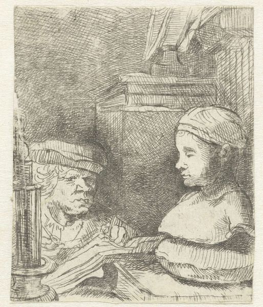 Abraham van Strij rendered “Two Children Reading by Lantern Light” in the late 18th or early 19th century using pen and brush in gray ink and gray wash. Reflecting the Enlightenment’s emphasis on education, this piece invites us to consider how access to knowledge shapes identity. The presence of a lantern is not just a source of light, but a metaphor for enlightenment ideals breaking through the darkness of ignorance. The children's engagement with reading hints at a societal shift towards valuing childhood as a period for intellectual development. The domestic setting speaks volumes, as the children are sitting together at a table with books, suggesting a degree of privilege and access to resources, which was not universally available. As you look at the children's faces, consider what access to education and knowledge meant during this era and how it continues to shape individual opportunities and societal progress.