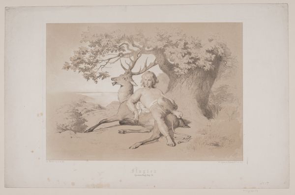 Curator: Ah, this piece whispers secrets of another time. Lorenz Frølich's illustration from 1856, "Kongsgården, pag. 69, illustration til Christian Winthers 'Hjortens Flugt,'" a lithograph—a moment caught in dreamy pencil strokes. It lives here at the SMK. What do you see? Editor: It feels… staged? Like a theatrical production caught mid-scene. The light is beautifully subtle, but the expressions are so posed, so deliberate. I get a strong Romantic drama vibe, but filtered through a very particular lens. Curator: Exactly! Frølich was deeply invested in illustrating Danish history and folklore, tapping into that vein of national romanticism so prevalent in the 19th century. Think of it as a visual soundtrack to Winther's poem. This specific scene captures a pivotal moment, filled with symbolic gestures. He really brings that Danish Golden Age painting style to this printed image. Editor: And who is the subject of this scene? She is directing him away… or telling him a tall tale about the nature scene around her. Curator: Precisely. This portrays a story where deception and appearances were employed to get this knight away from something--possibly his love or home-- that his peers disapprove of. In many ways, the themes represented mirror the political tensions happening at this point of history. The question that history has to face and interpret, whether there will be true transparency in these issues, is captured nicely, in my opinion. The fog of war, so to speak. Editor: And the use of lithography adds another layer of complexity, doesn't it? A medium capable of mass production, yet rendered with such delicate, personal touch. Did that impact the artwork's impact to common audiences? Curator: Oh, absolutely. It democratized art. Suddenly, these stories weren't just for the wealthy elite who could afford original paintings. Ordinary people could own a piece of their national narrative. That accessibility, the potential for these images to circulate widely, fuelled the romantic nationalism. Editor: I see that diffusion really giving this moment a wider social impact. But let me say: while understanding those historicist influences helps decode the work, my biggest reaction now is, to wonder… if I saw the source material from that time, what would that change? It is interesting that that historical context changes my feelings and initial impression about the artwork, now! Curator: A perfect reminder, I suppose, that art's magic lives in that conversation between history, emotion, and the ever-changing present. Editor: Indeed. Frølich’s lithograph does more than tell a story; it opens a window to the dreams and the realities of a nation forging its identity.