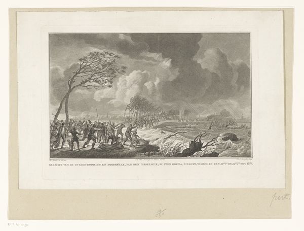 Editor: Here we have Thomas Stothard’s “The Sinking of a Man of War,” from the Tate Collections. It looks like it’s done with watercolor. It's pretty dramatic, I feel like I can almost hear the chaos. What story do you think it's telling? Curator: It’s a powerful scene, isn't it? Stothard, working in a period of significant naval conflict, reflects Britain’s complex relationship with its maritime power. The focus isn’t necessarily on victory, but perhaps on the human cost and the spectacle of naval warfare. Do you see how the smoke almost dwarfs the figures? Editor: Yes, it's overwhelming! It almost makes the sailors seem insignificant. Curator: Exactly! It subtly critiques the glorification of war, highlighting the individual’s vulnerability within these grand, often destructive, displays of power. The image reminds us that even in triumph, there’s tragedy. Editor: I never thought about it that way. So much more than just a sinking ship!
