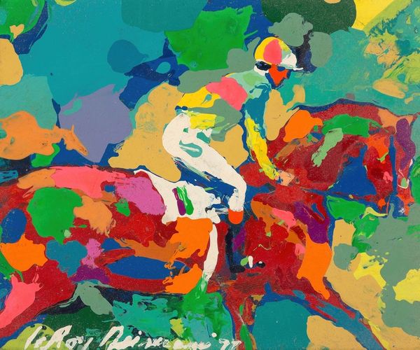 Curator: Editor: Here we have "Something like an Elephant" by Walter Battiss, likely created with acrylic paint in the Modernist style. It has this playful feel to it with its abstract, vibrant shapes. How would you interpret it? Curator: Well, for me, it's important to think about Battiss's background in South Africa under apartheid. Abstraction allowed artists like him a way to resist direct representation, maybe even comment on the oppressive structures through an seemingly innocent imagery. How does that framework influence your interpretation of the labor of painting such as this? Editor: I didn’t really see a sociopolitical message initially, but that’s interesting. The medium of acrylic paint suggests a democratized production method, making art accessible beyond traditional elites, does this tie into your consideration of labor? Curator: Precisely. Acrylics also imply mass production, readily available colors and surface textures that contrast to classical painting methods. And, let’s consider his use of bright colours and simplified forms: a rejection of academic art training that was considered important in this day. He is claiming a unique position, but how does the context influence this reading? Editor: It’s fascinating to view this 'playful' painting in a whole new light, knowing its production is intrinsically linked to social commentary through material choice and accessibility, and, in turn, pushing against established hierarchy of the art world and beyond. Curator: Absolutely! Considering production helps reveal resistance.