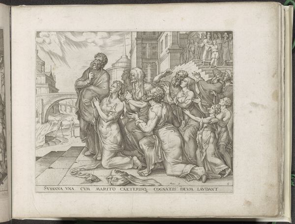 Philips Galle produced this engraving, Amnon verkracht Tamar, in the Netherlands sometime between 1550 and 1600. It represents a scene of sexual violence, derived from the Old Testament story of Amnon and Tamar. The image is replete with cultural references. We see the interior of what appears to be a royal bedchamber, complete with ornate furniture and heavy drapery. This is a setting of power and privilege, emphasizing the social status of the figures involved. The discarded objects on the floor—vessels, a helmet, a shield—serve as visual metaphors for the violation and disruption of social order. Engravings such as this were made for a growing market of collectors and connoisseurs. So this image raises questions about the politics of imagery and the social conditions that shaped artistic production during this period. To better understand this engraving, one might research the history of printmaking in the Netherlands, the reception of biblical stories in Renaissance art, and the social norms surrounding gender and sexuality in 16th-century Europe.