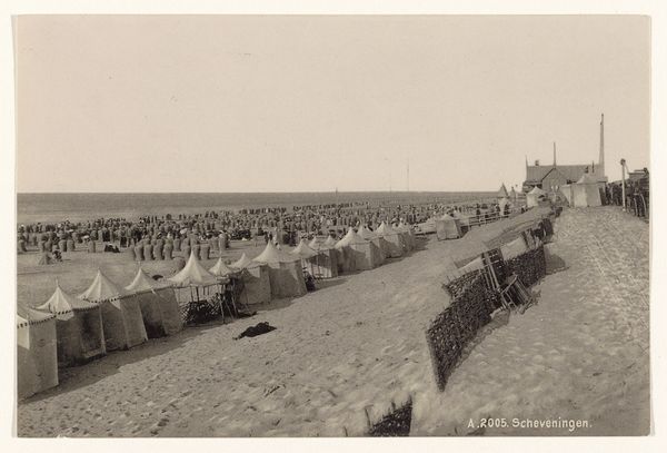 This photograph by Knackstedt & Näther captures a sweeping view of the beach at Zandvoort, but it also offers a glimpse into the social life of its time. The photograph, likely taken in the late 19th or early 20th century, depicts a beach densely populated with figures and bathing machines. This image creates meaning through its depiction of leisure and social gathering. Zandvoort, a coastal town in the Netherlands, was becoming a popular resort destination, and the beach here was a place where social classes mixed, albeit with some separation. The bathing machines, for example, allowed for more private changing and bathing, catering to a sense of modesty and class distinction. To better understand this photograph, we can turn to social histories of leisure, tourism, and the rise of seaside resorts. These resources help us understand how the beach became a site of social interaction and recreation, and how the development of tourism shaped coastal communities like Zandvoort. Through the lens of social history, we can appreciate how this photograph captures a moment in the changing social and cultural landscape of the Netherlands.
