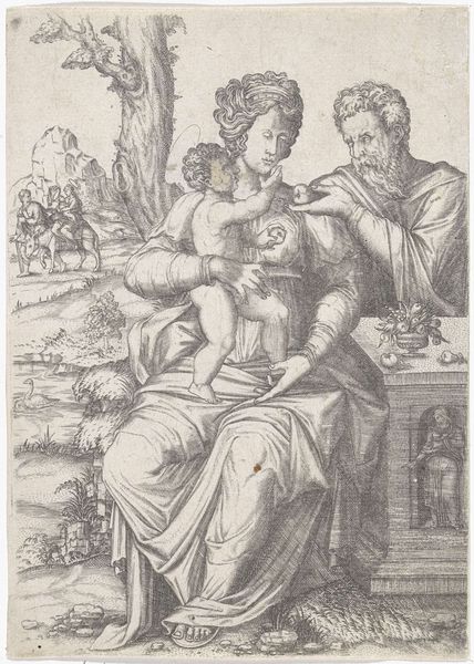 Jacob Matham created this engraving of "Christ and the Samaritan Woman," sometime between 1586 and 1631. During Matham's time, the Dutch Republic was undergoing significant social and religious upheaval due to the Reformation. This piece depicts a biblical encounter that transcends social and religious barriers. The story centers around Jesus speaking to a Samaritan woman – an interaction that defied the norms of the time, given the deep-seated animosity between Jews and Samaritans, and the prohibition against men speaking to women in public. Matham’s composition captures the tension and potential for transformation inherent in this meeting. We see a narrative of social transgression, where religious and gender boundaries are challenged. The emotional depth conveyed in their interaction invites reflection on the possibilities of dialogue across social divides. Matham’s engraving serves as a poignant reminder of the power of individual encounters to challenge entrenched prejudices, reflecting the complexities of identity and community during the Reformation.