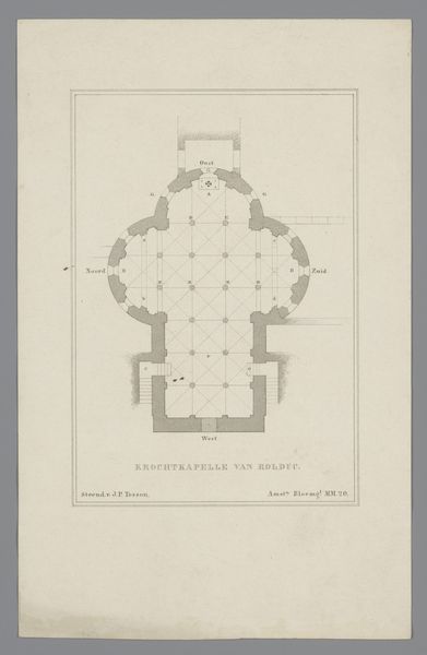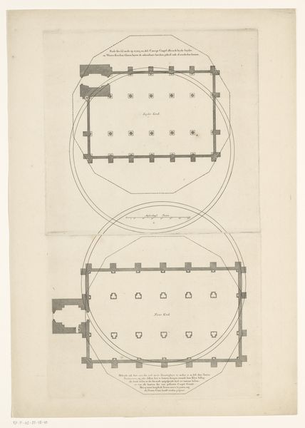 Editor: So, this is *Plattegrond met de derde laag van een koepelkerk voor op de Botermarkt te Amsterdam*, or Plan of the third tier of a domed church for the Butter Market in Amsterdam by Daniël Stopendaal, made circa 1700 to 1705. It's an engraving, a technical drawing really, with a certain austere beauty to it, all those precisely rendered lines… I wonder, what grabs your attention when you look at this piece? Curator: Ah, an architect's dream… or perhaps a nightmare? To me, it whispers of grand ambitions, the sheer audacity of attempting such a structure! I’m drawn to how the circular form fights, yet simultaneously, submits to the rigid geometry. Look how Stopendaal meticulously captures the spatial complexity! Does it strike you as utopian, or slightly mad? Editor: Utopian, definitely. The precision feels almost… obsessive? Was there something specific about Amsterdam at the time that spurred this kind of architectural imagining? Curator: Amsterdam in that era was a powerhouse, flexing its mercantile muscles, its cultural confidence bursting at the seams! Remember, this was the Dutch Golden Age; they were practically reinventing the world. This drawing isn't just about a church; it's about projecting power, permanence. A bit like sketching heaven itself, wouldn't you say? And the "Botermarkt?" The butter market? That’s peak Amsterdam irony! Editor: Heaven in the butter market. I like that! Looking at it that way, the geometric severity is tempered by that touch of Dutch wit. It does give the piece a completely new feel. Curator: Precisely! It's that tension, that delicate dance between aspiration and reality, that keeps it endlessly fascinating. A whisper of divinity grounded in… well, butter! What a thing!