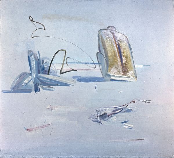 Curator: Stepping up to Owen Gent’s "Icarus No. 1" from 2018, I’m immediately struck by the strange mix of longing and premonition hanging in the air. Editor: Yes, there's definitely an unsettling balance at play, isn't there? The pale, almost desolate colors mixed with such a dramatically rendered figure leaping off the cliff edge… What do you make of the composition? Curator: It's funny, my first thought was a visual poem of daring—and impending doom. He's using watercolors here, I should mention, giving a hazy, dreamlike quality. That figure mid-leap – is he flying? Falling? – is beautifully ambiguous, don’t you think? It’s so evocative, feels like Icarus forever suspended between hope and disaster. Editor: Precisely. The superimposition of forms—is it another figure, an angel, perhaps? It fractures the reading. Semiotically, it introduces doubt into Icarus's supposed flight, rendering his ambition frail through that doubled presence, hinting instead at earthly restriction. Curator: Ah, but what if it's not doom? Maybe it's the echo of bravery, a refusal to stay put, to push beyond the boundaries we set for ourselves. Maybe Owen Gent’s speaking to that universal desire to touch the sun, consequences be damned! I always find it more compelling to consider how much beauty can reside in our follies. Editor: I agree about that universal drive to defy gravity and convention, but look at how he utilizes the limited color palette, so earthy, except for the flash of red along the "wing"—a color of warning? To me, it highlights the fatal hubris and potential catastrophe more than freedom. It speaks of inevitable limits imposed by both physics and perhaps fate itself. Curator: Perhaps. But maybe fate isn’t some fixed script. Maybe we write a little of it ourselves each time we take flight, even if we tumble in the end. The power of this Icarus for me is how it hangs suspended between interpretation— between gravity and grace, between freedom and a tragic flaw. Editor: True, and perhaps that suspended state—structurally expressed through Gent's striking composition—is where the essence of the work resides. It prompts us to dwell on our own precarious leaps into the unknown.