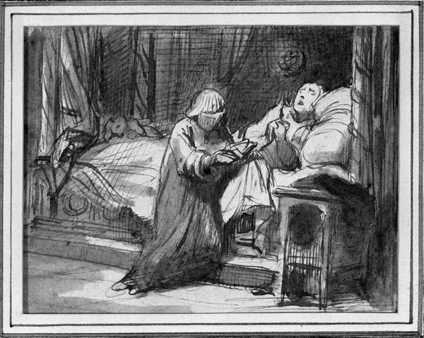 Curator: Looking at Edouard Riou’s engraving, from 1864, "Journey to the Center of the Earth"… it really plunges you right into the heart of 19th-century adventure! Editor: Oh, absolutely! I feel this distinct mood. It's all gothic architecture and frantic energy... it kind of pulls me in; it is definitely about something profound getting ready to occur! Curator: Right! Riou crafted the illustrations for the first edition of Jules Verne’s novel of the same name. Consider that the book trade really opened doors for folks in the nineteenth century. So Riou needed to develop the perfect aesthetic language here, relying heavily on engraving techniques to communicate complex narratives to a mass readership. Editor: What's fascinating to me, however, is the weight, you know? The weight of all of that text, now dispersed… look at the size of those crates piled on the cart in comparison to that little horse; the weight, then, and its circulation. That's labor and that's economics... it's about something concrete. Curator: You're so right! Yet the drawing still manages to be deeply evocative and fantastical... this little, seemingly provincial village now ready for the strange task. This gateway—almost ecclesiastical. Are we leaving, or coming back home? Editor: And that doorway—crafted from stone! Who produced the materials? Transported them? Fashioned that arch? Who was commissioned? What were they paid? Every tiny little line made with engraving tools; somebody had to produce them! So much unseen labor… Curator: So, Riou then doesn't only gift us with a captivating moment from a timeless novel. He also delivers a perspective—doesn't he—of humanity confronted with something magnificent—or terrifying—outside of everyday life. Editor: Absolutely! By thinking about its means of production, it really connects me, again, back to our physical relationship to information as tangible commodity, not ethereal, immaterial… and this feels valuable! Curator: Thinking through the means here reveals such a powerful echo with the story it accompanies—I see how those dual paths ultimately connect—opening up many worlds for both me and us—listeners—alike. Editor: Exactly! It also urges a needed return to the materiality behind even our seemingly most boundless adventures, wherever we go.