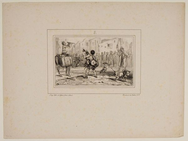 Editor: So, this is "After Dinner" by Henri Bonaventure Monnier, held at the Harvard Art Museums. It's a drawing, and the scene feels very intimate. What are your first impressions, looking at it? Curator: Well, the title "After Dinner" and the inscription below tells us about the world that the artist depicts. Can you make out what the inscription says? Editor: It looks like "Intimité s’établit entre les convives, bons mots et cailles." Curator: Exactly. It shows how the drawing is meant as social commentary on the intimacy established between guests after a nice meal. Editor: That's fascinating! So it is not just a simple depiction but a reflection on social dynamics? Curator: Precisely. It's about observing and commenting on the societal rituals around dining and socializing. Editor: I see it now! Thanks for sharing your insights. Curator: My pleasure. It’s always rewarding to consider art within its social context.