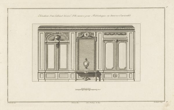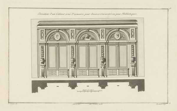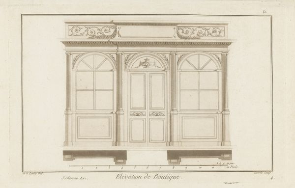 This drawing of a façade with pilasters was made by Antoine Carrée in the 18th century. Carrée used ink and paper to bring this architectural design to life. The drawing's fine lines and precise details highlight the classical architectural elements, from the fluted pilasters to the ornate decorations above the windows and door. The evenness of the ink suggests a deliberate and controlled process, which contrasts with the elaborate design. This was not just a technical exercise, it was likely a proposal intended to persuade a client. Consider the amount of labor involved in producing the drawing. The skill and precision required to create such a detailed rendering would have taken years of training. And think about the labor that would have been needed to actually build this façade - quarrying the stone, carving the details, and assembling the structure. Ultimately, this drawing is a window into the world of 18th-century design and construction. It shows the close relationship between the artist, the craftsman, and the patron, and reminds us that even the simplest of materials can be transformed into something beautiful and meaningful through skill, labor, and imagination.