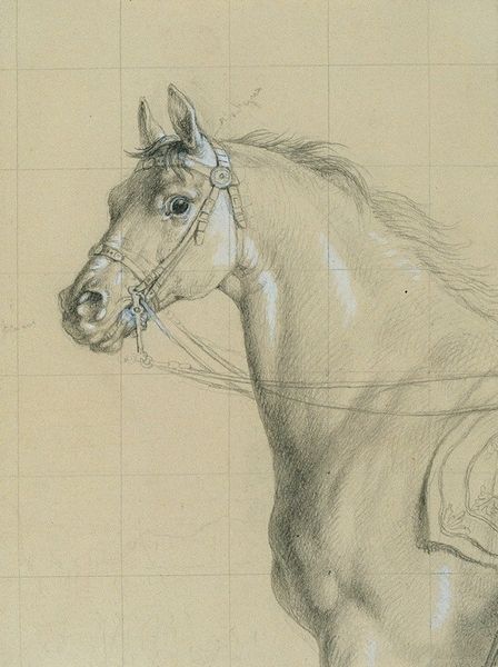 Curator: This drawing, rendered in graphite on paper, is titled "Sketch for the painting Bathing the Red Horse," created in 1912 by Kuzma Petrov-Vodkin. The confident lines bring out so much drama from something that is preliminary. Editor: Yes, I'm struck immediately by how dynamic it feels, even for a sketch. There's an incredible sense of weight and movement. You can almost feel the horse breathing. Look at the thickness of lines describing its torso. Curator: The application of the graphite shows clear labor in progress: there are areas that are just outlines and then concentrated areas that imply light. It also gives insights into the methods used to explore and resolve pictorial ideas. It invites us to examine the artist's choices and studio practice. Editor: Exactly, knowing the final painting became so iconic, it's fascinating to see this early stage, stripping back the layers. The sketch feels like an X-ray, revealing the underlying structure upon which the final work rests. The way that the horse is central and yet we have a glimpse of another figure is great stage-setting and offers an insightful lens. Curator: That horse became symbolic, especially in Russian art circles of the early 20th century. The piece places the heroic nude and domesticated animal centrally to propose renewal but ultimately it also promoted imperial authority with a powerful military symbol. It also showcases the intersection of art and ideology in a time of significant political change. Editor: And even just in the material, it gives you an interesting feeling—how can something so fierce and representative also be an ephemeral gesture? What does this pencilwork imply about our interaction with art history, given what's missing from it, or how it survives at all? It invites questions about access, doesn't it? The way value gets ascribed, in that it's a precursor. Curator: It's a beautiful opportunity to explore these processes and final production together. This allows the sketch to participate in how audiences value and ascribe meaning. Thank you for expanding on it. Editor: Indeed, thinking about its making certainly enriches my experience of the completed work. The politics of sketching practice can expand ways we value material creation.