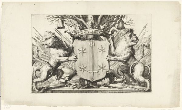 This ornamental design was etched by Bernard Picart around 1725. The print’s stark lines and precise detail are characteristic of etching, a process that involves drawing with a needle through a wax coating on a metal plate, which is then submerged in acid. The acid bites into the exposed lines, creating grooves that hold ink. Etching was a commercial medium, allowing for the relatively quick production of multiple copies. Picart was a master of this technique, and created numerous illustrations for books and prints that were widely distributed. Here, the medium allows for the intricate depiction of winged monsters, musical instruments, and classical motifs. While the design may seem purely decorative, its existence is inherently tied to commerce. The design could be applied to any number of luxury objects. It reflects a growing culture of consumption in the 18th century, where even the most seemingly frivolous images were part of a larger economic system. By considering the materials and methods of production, we can see beyond the surface and understand the social and economic forces that shaped even the most delicate of artworks.