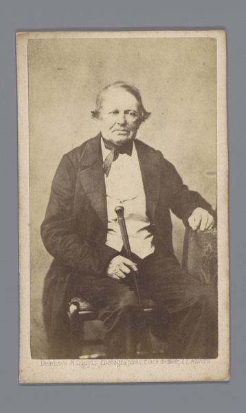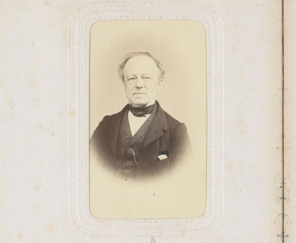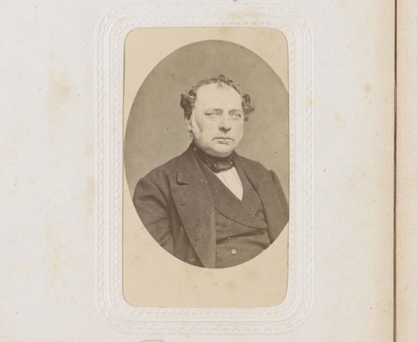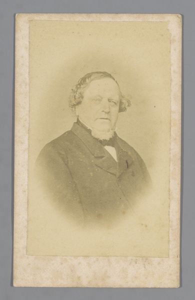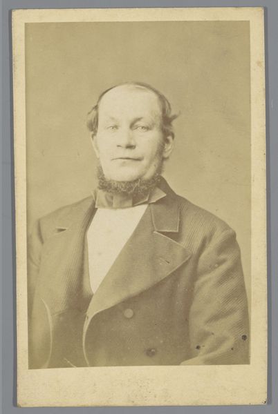 Editor: So, this gelatin-silver print, titled "Untitled [portrait of an unidentified man]" by Jeremiah Gurney, dates back to sometime between 1858 and 1869. There's something about the direct gaze that’s quite striking. How do you interpret this work? Curator: I see this portrait as a potent encapsulation of mid-19th century America, steeped in complex socio-political tensions. Consider the historical backdrop: this photograph was taken on the precipice of immense societal upheaval. Do you think that context impacts the image itself? Editor: It must, right? But how can we *see* that upheaval in just a portrait? Curator: Look closely at the sitter's attire and demeanor. While seemingly ordinary, they represent the emergent bourgeois class asserting their presence. Yet, what's not overtly displayed is crucial: labor exploitation, racial inequality, and gender constraints of the era are all, in effect, behind this man in the picture. This is more than an image of a person. It embodies the era's social fabric and power structures. Do you perceive any hint of vulnerability, or perhaps defiance, beneath the surface? Editor: Now that you mention it, there’s a certain rigidity to his posture, almost as if he’s presenting a carefully constructed image to the world. I hadn't considered how much these unseen forces shape our understanding of what’s actually there, and how that could affect the image's overall meaning. Curator: Precisely. His social standing and identity, in relation to his time period, both influences and constraints his portrait. Editor: I guess what I’m taking away is the importance of looking beyond the subject matter in understanding what the artist captures and what they intended for us to learn about history. Curator: Agreed, reading artworks as cultural documents that both reflect and critique their contemporary contexts enables an important, relevant interpretation.