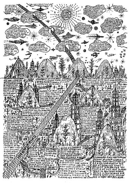 Curator: Wow, talk about atmosphere. I’m immediately struck by how dramatic this landscape is, all done with such meticulous lines! It's like a dreamscape captured in monochrome. Editor: You’re absolutely right! It's one of a few landscape drawings by Albrecht Altdorfer, likely created in the early 16th century. There are few of Altdorfer's drawings and prints surviving that fit into such categories as pure landscape, so to encounter one, to consider the implications of the emergence of such images during the Northern Renaissance, can reveal so much. This is a drawing done in ink, potentially designed for a woodcut, given the intense level of detail that could translate to that printing method. Curator: A woodcut, you say? That explains the almost brutal precision! But look at that swirling sky, and how that contrasts against the solid mass of the mountain range and how they stand as bulwarks to what lies beneath. To me, this is all about the sublime terror and the serenity of nature. Editor: Exactly! And thinking of Altdorfer’s historical and geographical position, nestled in Bavaria, allows us to examine the artwork as part of burgeoning European concerns about man's impact upon an already formidable landscape. His landscapes often hint at the wild and untamed aspects of nature which were simultaneously being romanticized and subjugated. The detail is intense; so how could he make something with this level of expression? He created and participated in a philosophical shift towards experiencing our environs in ways that reflect the individual, and that meant considering his own impact. Curator: You put that into perspective so well! Thinking about our position today, confronted by environmental change, I'm struck by the way Altdorfer shows us, even back then, this tension. The clouds gathering overhead even suggest the storms that threaten that lower, central cluster of houses. Editor: It’s a powerful vision! The play of light and shadow certainly brings out the texture of the tree and the rocks, offering a hyper-realistic view that then contrasts sharply with the miniaturized vista below it of town life. This level of landscape as a central image allows its audience the opportunity to rethink their connections to all places. Curator: So, in the end, do we leave understanding that nature is indifferent to our human drama? I’m fascinated how much this tiny work still stirs up. Editor: Absolutely. These works by Altdorfer are touchstones. I’ll need to come back and see this one again.