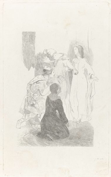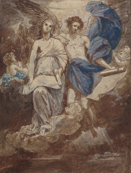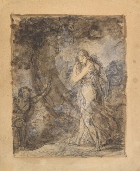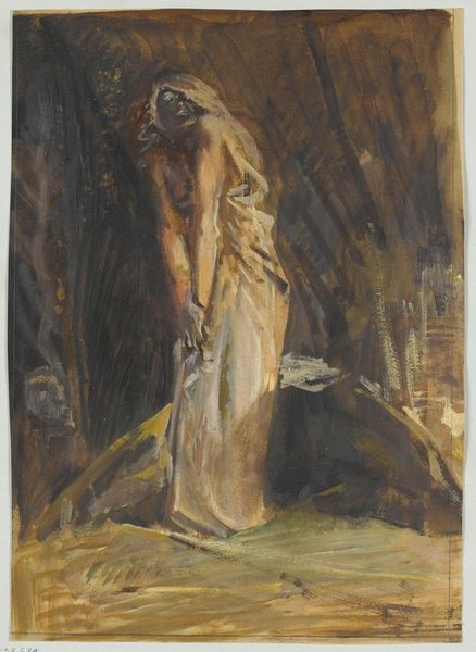 Editor: So, this is Hans Canon's "Skizze zur 'Marter des Hl. Hippolyt'" – a sketch for ‘The Martyrdom of St. Hippolytus’ – created sometime between 1860 and 1880, and rendered in oil paint. It’s quite shadowy, dramatic even… I'm intrigued by the ambiguity. What do you see in this piece? Curator: Ah, yes, the murkiness! It feels less like looking at a definitive statement and more like eavesdropping on an idea in its most nascent, volatile form. Canon's figures are emerging, ghost-like, from the darkness – or being consumed by it. This to me evokes that turbulent period when Romanticism began its fascinating dance with the more representational and historical-narrative focused styles. You could say that he's conjuring up history as a dreamscape, as a felt experience rather than a record of verifiable facts. What emotional notes does the painting strike in you? Editor: Definitely a sense of unease, of something violent but also spiritual. The way the light hits certain figures almost makes them look like they are ascending, while others seem trapped. Curator: Exactly! The sketch is charged with the energy of transformation, that charged point when suffering possibly transcends to spiritual triumph. Do you see hints of that struggle mirrored in the broader movements of the art world at that time, too? Editor: I do, actually. I guess I hadn’t thought of it that way – as a reflection of the struggle between different artistic movements themselves! Curator: Art, just like life, is frequently mirroring, a layered conversation through the ages. Thank you for those insights. Editor: And thank you for making me consider that even sketches can contain such powerful, historical narratives. It’s amazing how much history can be present even in the "unfinished".