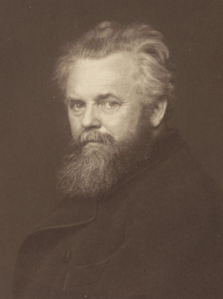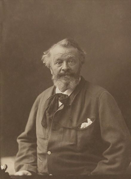 Editor: Here we have Félix Nadar's photograph of Victor Hugo, created around 1870. It's a gelatin silver print, and the tones are quite warm and inviting, almost sepia-like. The overall impression is one of gravitas. What is your interpretation of this particular image? Curator: Nadar's photograph captures more than just Hugo's likeness; it’s a carefully constructed image playing with the power of celebrity and public perception. Hugo was not merely a writer, but a towering figurehead of French Romanticism and Republican ideals. Consider how Nadar, himself a staunch Republican, might have been interested in projecting this image of intellectual and moral authority. Editor: So the photo is making a political statement in a way? Curator: Precisely. Think about the timing: 1870, the end of the Second Empire and the dawn of the Third Republic. Photography at this time became a powerful tool for shaping political discourse and public memory. A portrait of Hugo by Nadar was a deliberate act of enshrining him within a new political order. Have you thought about the pose? Editor: Well, he looks like he is thinking very deeply and maybe like a man of the people in deep thought. Curator: Indeed, but also of one resting, as in an academic or political position with power over others, due to his body language, such as hand position. Editor: This really puts the image in a whole new context for me. I was so focused on the Romantic aspects, like the soft light and the pensive mood, that I overlooked the potential political message embedded in the photograph. Curator: It shows how the history of a time shapes art. We can examine how art participates in society and constructs its power. A powerful work to really dive into what things it shows, politically, and artistically!