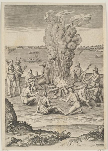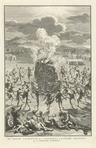 This engraving was made by Bernard Picart, likely in the early 18th century. It depicts a ritual of thanksgiving among the Indigenous people of Virginia. The image is realized through the skilled application of line, which is deeply connected to social and cultural meaning. As a mechanical medium, engraving was critical to the rise of modern capitalism. It made images widely available and reproducible, fueling a growing information economy. Yet, the individual labor involved in creating each plate—the careful cutting of lines into metal—also stands in stark contrast to the human cost of colonialism, here a kind of evidence from afar. Consider the details: the way Picart suggests textures and forms through hatching and cross-hatching, and the knowledge he conveys of ethnographic detail. While this image provided Europeans with a glimpse into an unfamiliar world, it is worth remembering that the processes of making and the drive for profit were transforming that world forever. This print serves as a reminder of the complex intersection of art, craft, and commerce.