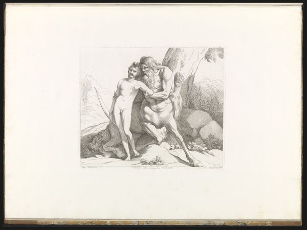 Curator: This intriguing print from between 1851 and 1900 offers a photographic reproduction of Michelangelo’s famed fresco, "The Creation of Adam," found within the Sistine Chapel. Editor: My initial thought is of the drama inherent in that almost-touching point. There's such anticipation of energy and life being transferred. Even in this older photographic reproduction, it leaps out. Curator: Indeed, and the reproductive nature itself is telling. Think of how photographs democratized access to masterpieces like this one, allowing for broader engagement with Renaissance ideals. These prints served as tools for education and dissemination of artistic values across social strata. Editor: It’s more than just documentation. The outstretched hands have become a potent symbol in their own right, representing not just creation but connection, inspiration, and the divine spark within humanity. Even in a photographic copy, the hands resonate with millennia of symbolism relating to divine authority and artistic creation. Curator: Precisely, and let’s consider the broader social impact. This image, endlessly reproduced, helped to construct and reinforce the Renaissance as a cultural touchstone, shaping artistic canons and influencing generations of artists. Editor: You see it, still, everywhere, not merely a reproduction of a moment of creation but also one reinterpreted, remixed, repeated again and again; in effect creating itself. Curator: And that repeated viewing changes its meaning in turn, the image’s history evolving with each use. The materiality matters too, how the fresco gives way to a photographic reproduction. What’s lost and gained with such an exchange. Editor: Seeing it now, I'm freshly struck by the composition. The barren earth versus the billowing fabric that encloses God and his entourage feels incredibly telling—contrasting earthly existence with divine fullness. Curator: Well, thinking about it through a historical lens has highlighted, for me, how much these images help to disseminate art beyond their original contexts, creating new, multifaceted roles. Editor: For me, the staying power of symbolic touch continues to resonate, illustrating humanity's timeless search for meaning.