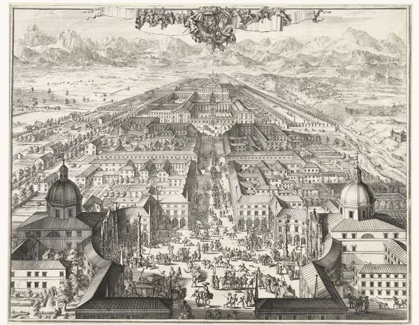 Editor: This etching and engraving, titled "Parochiekerk Sint-Willibrordus, buiten Antwerpen," or Parish Church of Saint Willibrord outside of Antwerp, was created between 1659 and 1667 by Lucas Vorsterman II. It’s incredibly detailed. The texture achieved with the engraving process seems very precise and deliberate, creating this feeling of meticulous control, but there's still a bit of fantasy in it. What do you see when you look at this? Curator: Immediately, I see the labor. Look at the intricate work involved in both etching and engraving on the same plate! The social context is right there, interwoven into the production itself. Vorsterman likely employed apprentices, dividing the tasks. Each line, each tiny dot, is a testament to someone’s work, whether master or journeyman. What does the division of labor tell us about the hierarchies of art production at the time? Editor: I hadn't considered that, actually. So you are suggesting we look beyond Vorsterman’s signature and think about all the other, possibly unnamed, artisans who helped bring this image to life? Curator: Exactly! Think about the availability and cost of copper plates, the tools needed for engraving, and the networks required to distribute prints like these. Consider the materials and processes, and how that dictated the affordability and availability of the artwork, and therefore the accessibility of the image of the church, to a wider audience. Does this expand your interpretation? Editor: It definitely does! By looking at the print through the lens of production, we gain a far better sense of the whole artistic ecosystem. Thank you! Curator: My pleasure. And now, think of how these prints themselves were bought, sold, and displayed—part of a vast cycle of material culture.