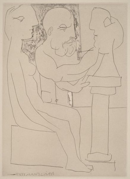 This is Picasso’s etching, Flautist and Young Girl with Tambourine, and it feels like he made it in one breath. It's the kind of drawing where the line keeps moving, almost like it’s discovering the forms as it goes, not labored or overworked, but intuitive. I love how Picasso uses simple lines to suggest so much. You can see the faintest lines, almost ghostly, outlining the figures and their classical drapery. Then there's the girl’s foot, so lightly rendered it is barely there at all. It makes you wonder about the pressure he put on the plate, how he decided what to emphasize and what to leave to our imagination. It's like he's inviting us to finish the drawing ourselves, to participate in the act of creation. It reminds me of Matisse’s line drawings, that same sense of effortless grace, but with Picasso’s own kind of energy. It's about the conversation between artists across time, each responding to the other, and embracing ambiguity as a strength.