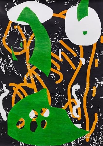 Curator: Norman Bluhm's "Frozen Summer," completed in 1966, is an acrylic on canvas Abstract Expressionist work of considerable size, isn't it? A large triptych. Editor: It hits you with a raw energy, doesn't it? The forceful brushstrokes—they feel almost violent against the stark white background. It feels chaotic but in a deliberate, controlled way. Curator: Precisely. The interplay of these forceful lines – black, primarily, with interjections of green, blue and the occasional flash of red – establishes a powerful sense of dynamism. Note the intentional drips. Editor: That rawness—the drips and splatters, those bold, dark lines boxing in that bright white. Doesn't it remind you of landscapes after some devastating natural event, like a flood or maybe an avalanche? The “frozen summer” suddenly makes chilling sense. Curator: It's fascinating how Bluhm utilizes the triptych format. The panel divisions segment the visual space, inviting the eye to dissect the composition into discrete yet interconnected elements. He controls how your eye jumps, emphasizing certain painterly gestures. Editor: And I can't help but see primal symbolism in that heavy, almost enclosing linework, trapping—protecting?—the blank center. There's an almost womb-like feeling in the negative space, set against the chaotic marks surrounding it. An egg? A portal? Curator: An intriguing observation. I am especially struck by the structural deployment of white and its active function rather than remaining merely an absence of color. Editor: In fact, now I think about the title; perhaps 'frozen' is an evocation of preservation – Bluhm capturing summer and safeguarding the energy and chaos inherent to that season? It feels like more than an abstraction to me. Curator: Ultimately, the beauty of Bluhm’s work is found precisely in this kind of dynamic and diverse reading; “Frozen Summer” succeeds in provoking contemplation. Editor: Indeed. And perhaps prompting us to seek deeper meanings, both formal and symbolic, within abstraction itself. Thank you for your insight.