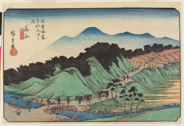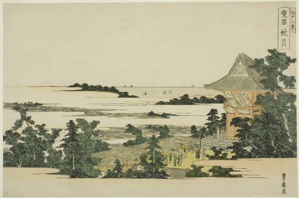 This print, titled "Acht gezichten op Kanazawa", was made by Utagawa Hiroshige using woodblock printing, a quintessential technique of the Edo period in Japan. The image is composed through a meticulous carving process, where each color requires a separate block. Note how the subtle gradations of color create depth and atmosphere. This was achieved by applying varying pressure to the baren, a flat, round pad used to transfer ink to paper. The process demanded intense collaboration between the artist, block cutter, and printer. Consider the implications of this division of labor, and the distribution of Hiroshige’s designs through the market. Woodblock prints democratized art, making it accessible to a wide audience, yet these artworks are also the product of industrial manufacture, reliant on the coordinated effort of many hands. By understanding the labor involved, and the techniques used to create this print, we gain a richer understanding of its cultural and social significance, beyond its aesthetic appeal.