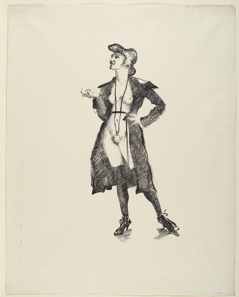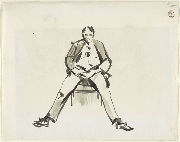 Curator: This is Sir Max Beerbohm's "The Man from Hymettus. Mr Frederick Leighton," held in the Tate Collections. I’m immediately struck by the subdued palette and the almost caricatured pose. Editor: Indeed. Beerbohm was known for this style of caricature, published widely in periodicals. It’s intriguing how his work intersected with the rising culture of celebrity and the art market’s reliance on image. Curator: And the materials themselves – the paper, the inks – suggest a mass-produced image. It prompts questions about how such images helped construct Leighton’s public persona. Editor: Leighton, as president of the Royal Academy, occupied a pivotal role within the Victorian art world. Beerbohm's caricature highlights the relationship between artistic institutions and individual reputations. Curator: Right, the materials here aren’t inherently precious; they are tools for dissemination. Editor: Perhaps it’s a commentary on the commodification of artistic identity. Curator: A point well made, and the availability of such images certainly shaped public perception. Editor: A fascinating intersection of artistic production, personality, and the wider social sphere.