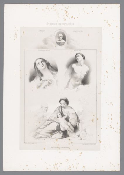 Editor: This artwork features two photographic reproductions of drawings, both depicting actresses in costume, created by F.A. Dahlström in 1890, using pencil. I'm immediately struck by the downward gaze of both women, which creates a mood of introspection or perhaps even melancholy. What do you see in these portraits from a more formal perspective? Curator: I'm drawn to the structural composition, and how the artist has utilized a subtle, yet deliberate, tonal range. Note the academic art style; Dahlström is primarily concerned with the accurate rendering of form and detail. Semiotically, one could decode the downward gazes you mentioned. They function as signifiers, possibly alluding to the internal struggles of these performers, or perhaps referencing classical representations of pensive muses. The treatment of light and shadow across their faces is expertly rendered. Do you notice how the texture differs in each portrait based on the material of their costumes? Editor: Yes, I see what you mean. The lace trim on the bottom figure contrasts beautifully with the plain fabric of the top one. It's a remarkable study in contrast and form. Curator: Precisely! Furthermore, observe the artist’s engagement with line—the delicate hatching used to describe the soft curvature of their faces contrasts significantly with the sharper, more defined lines used to articulate the intricate details of their costumes. What does this tension suggest to you? Editor: Perhaps it highlights the dual nature of the actresses, their personal selves versus their public personas defined by their costumes? It's intriguing how the artist used line and shadow to convey so much. Curator: Indeed! Dahlström masterfully exploits the intrinsic qualities of the pencil medium to express the emotional and physical complexities inherent in portraying these actresses. The work presents a compelling example of form mirroring content, enriching our understanding of the subjects beyond a mere representational depiction. Editor: Thank you; I had not fully noticed all the complexities in the drawing until you described the artist's technical focus, and how well line, shading and structural composition combine to portray not just appearance but deeper emotional elements as well.