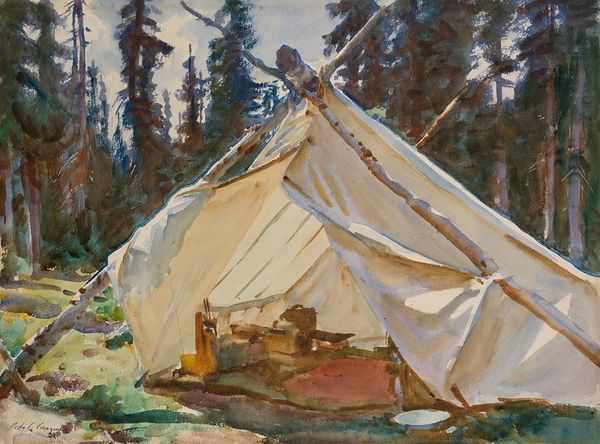 Tom Lovell captured this Gold Mining Camp with an eye for lively composition. The dynamic scene is constructed through intersecting diagonals, leading the eye from the foreground's jubilant figures to the backdrop of tents and wilderness. Lovell's use of light and shadow carves out depth, enhancing the textured portrayal of the rough-hewn camp. The chromatic scale accentuates the human drama, contrasting the golden light on the miners' faces with the muted tones of the landscape. The artist's strategic deployment of these pictorial elements invites us to consider the visual rhetoric employed. This piece operates within the visual syntax of American frontier art, yet it also subtly challenges the romanticized vision by emphasizing the rawness of the miners' existence. The composition hints at the precarious balance between nature's bounty and human endeavor, reminding us that art is not just a window, but a constructed reality. This blend of formal arrangement and cultural coding makes "Gold Mining Camp" a compelling study of the semiotics of the Old West.