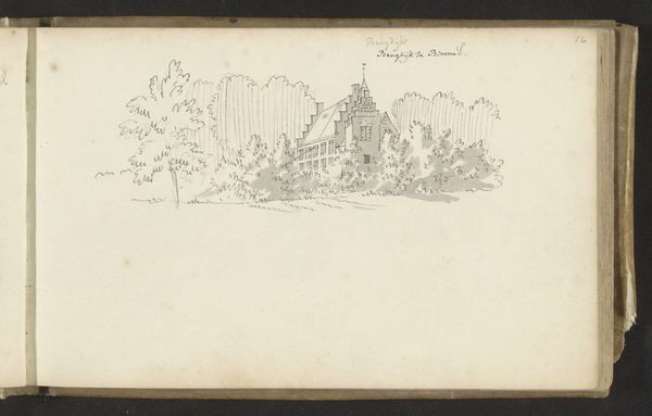 Abraham de Haen's sketch, "Huis de Hoge Zorg te Emmerik," presents a tranquil scene rendered with delicate lines and a nuanced understanding of spatial arrangement. The composition is structured around the juxtaposition of organic and geometric forms. The artist uses line to distinguish the architectural elements of the house from the soft, diffused shapes of the surrounding trees, creating a tension between the man-made and the natural. The architectural structure appears almost skeletal and the foliage is just a mass of lines. This prompts an exploration into the artwork's deeper structures. De Haen’s rendering reflects a period grappling with Enlightenment ideals and the growing interest in categorizing the natural world. Note the overall sketch-like quality of the work. It invites the viewer to consider the relationship between direct observation and the conceptual frameworks that influence how we perceive and represent our environment. This dialogue invites us to continuously re-evaluate our understanding of art, nature, and the intellectual constructs that shape our vision.