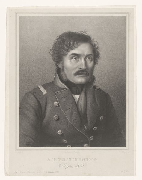 Curator: Alright, let's dive in. What grabs you first about Lundbye's portrait of his father? Editor: We are looking at Johan Thomas Lundbye’s 1836 painting, “Oberst Joachim Theodor Lundbye, kunstnerens fader” rendered in oil on canvas. It's a serious portrait...I almost feel a little intimidated. It's very…stately. What do you make of it? Curator: Stately, indeed. But behind that composed façade, don't you sense a profound personal connection? It is not just any officer he's painted but his father, a colonel. Think of the colours -- the solemnity of dark background and clothing, punctuated by the golden epaulette... almost shimmering like a memory. Do you think that's significant? Editor: Absolutely. It adds such warmth to an otherwise cool portrait. But also I guess the details of his uniform point to how he saw his father too? Curator: Precisely! Lundbye isn't simply capturing likeness; he is communicating admiration, respect and love. There's this gentle quality in the brushwork that softens the subject just enough. Almost like remembering a stern lecture from childhood - serious but tinged with fondness. Can you see that interplay? Editor: Yes! The more I look, the more I see that affection peeking through. I had only picked up the military aspect, at first glance. Now that you’ve helped me unlock the emotion behind it, it all seems so clear. Curator: Art has that delightful ability to keep revealing layers to us! Thanks for pointing out its initially intimidating aura. It is something I would never have noticed, because for me it is deeply emotional.