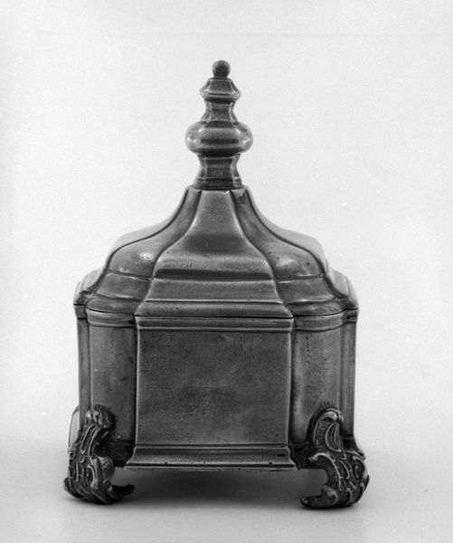 Curator: This serene ceramic lantern, dating back to 1850, crafted by the artist Genemon, now resides at the Metropolitan Museum of Art in New York. It whispers secrets of a time long ago... don't you think? Editor: Immediately, I'm struck by the contrast between its geometric rigidity and decorative flair. It almost feels as though mathematical precision is colliding head-on with unfettered whimsy. The interplay really invigorates the whole structure. Curator: Ah, the tension between the structural and ornamental – a delightful dance indeed! I feel as though Genemon invites us to linger, inviting us to step into its warm, inviting aura. What are your initial interpretations on closer inspection? Editor: Those intricate perforations, arrayed into tessellated, diamond-shaped openings... They almost form their own, smaller lattices nested within the greater one, wouldn't you agree? I'm drawn to consider how these might subtly modulate any source of light filtering from within, as if manipulating light were central to the function of the object. Curator: Precisely. Imagine the patterns it must have cast, dancing shadows painting stories on the walls of its home. It feels as if it existed to transform an ordinary evening into one with endless tales whispered into the air. It seems less about simple utility, more of an invocation. Editor: Right, and this approach underscores the ceramic nature, transforming simple form into decorative presentation; or maybe it could be argued that these components emphasize how utility can only come from first considering presentation. I find it so evocative. Curator: Perhaps Genemon sought to show beauty in simple domestic settings. Maybe through crafting with such careful intentions and loving detail. These are pieces of our soul reflected back to us through art. Editor: Absolutely, the details encourage close contemplation, to slowly unfold it visually. I leave with more curiosity for craft’s power, to blur art and functional design as one inseparable whole.
