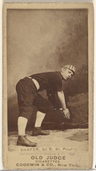 This card was made around 1888 by Goodwin & Company for Old Judge Cigarettes, and features William Ashley "Billy" Sunday of Pittsburgh. It's a mass-produced photographic print, slipped into cigarette packs as a promotional item. While it may seem worlds away from "high art", consider the labor involved, not only in Sunday's athletic training, but also in the tobacco fields and factories that made this image possible. Photography, newly industrialized, here serves the purposes of advertising. The card is small and relatively fragile, reflecting its disposable nature. The sepia tone gives it an antique feel, but was also a practical choice for mass production. The image itself captures a moment of action, showcasing Sunday's skill and athleticism. These cards were immensely popular, creating a direct connection between consumption, celebrity culture, and the burgeoning business of baseball. So, next time you light up, remember the hidden histories embedded in everyday objects.
