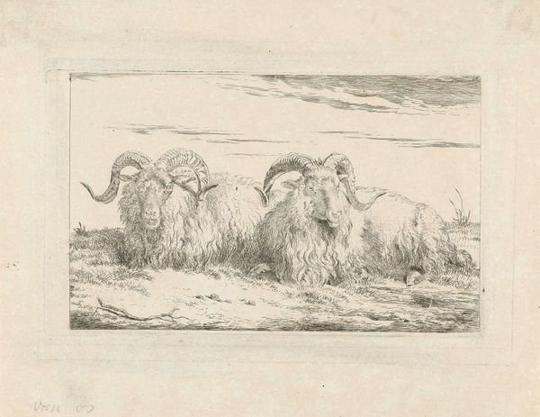 Editor: This small etching by the British School features an elephant chasing a person. It feels frantic and a little comical, actually. What do you make of it? Curator: I love the energy! It's like a fever dream distilled into ink. The cross-hatching gives the elephant this wonderful, almost vibrating texture. The tiny human figure, desperately fleeing, amplifies the sense of scale and perhaps hints at vulnerability. Ever feel like that, dwarfed by some massive problem? Editor: All the time! So, is it just about feeling small? Curator: Perhaps. Or it could be a playful commentary on power dynamics, the unexpected chaos of life. What stories does it whisper to you? Editor: I guess it reminds me to keep running, metaphorically speaking, from whatever chases me. Thanks! Curator: And it reminds me that even the scariest monsters can look a little absurd in the right light.