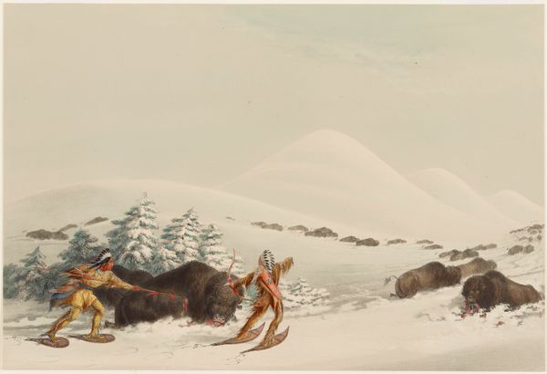 Mort Künstler made this painting, Top of the World, presumably with oil on canvas, and what I notice first is how the action is frozen. The whole scene is painted with thin, careful strokes and a tight realism. There's very little texture, but the overall effect is still dynamic. The colour palette is cool and muted, dominated by blues, whites, and greys, but this makes the warm oranges of the hunter's clothing pop out against the landscape. And then there's that yellow burst from the rifle – a concentrated point of energy that sets off the whole scene. It’s as if Künstler is saying, "Here’s where the story really begins." The frozen breath of the man who is running away is a beautiful detail, capturing the instant when everything went wrong, when the hunt turned into something else entirely. It's like he’s trying to capture not just what happened, but what it *felt* like. Künstler’s work reminds me a little of Norman Rockwell, with his own way of telling an involving story in a single frame. Ultimately, what the narrative is, is up to us.