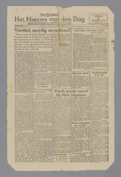 This is a newspaper called Het Nationale Dagblad. Think about how each tiny article, each miniscule word, is placed with purpose on the page, each contributing to the story being told in its own way. The entire page is a tapestry of information, where the ink is the thread connecting everything. The texture here is like time itself, a little rough around the edges, maybe a bit faded, but still vivid. It’s amazing to think of the hands that touched this paper, the eyes that scanned its lines, the stories it whispered to a world in need of understanding. I focus on the headline, imagining the weight of each letter as it came hot off the press, each character a tiny statement in a world that was rapidly changing. For me this work is a conversation with other newspapers, from the New York Times to your local gazette, art’s an ongoing dialogue, an exchange of ideas across time and space.