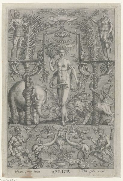 This is an ex libris, or bookplate, by E.M. Riera, realized with engraving techniques. The composition presents a central grouping of figures, enclosed by an ornate, decorative border. The lack of color intensifies the focus on the line work and the shapes created within the composition, leaving an austere impression. At the forefront, a woman and a swan intertwine, creating a spiraling form that guides the viewer's eye. To the left, a smaller figure, perhaps a nymph or cupid, echoes the curves of the central subject. The heavy lines define forms while also creating a play of light and shadow, adding depth. The symmetrical arrangement of vases and mythical creatures along the top and sides of the border stabilizes the composition, while also framing and containing the more fluid central elements. The choice of figures, the symmetry, and detailed engraving situate this work within a tradition that seeks to unite classical forms with the personal mark of its owner, J.B. Rietstap. As such, it becomes an intellectual statement as much as a marker of ownership.