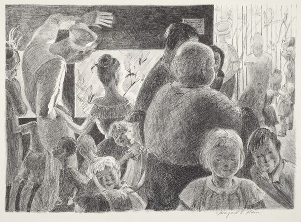 Editor: This photograph by Lucian and Mary Brown, titled *Untitled (people eating at luau)*, shows what seems like a festive gathering. It's a bit hard to see in negative, but everyone is wearing leis. What symbolic weight do you think the leis carry in this image? Curator: The leis immediately signify welcome, affection, and celebration. They are potent symbols, visually linking the scene to broader cultural ideas of Hawaiian hospitality and aloha. The very act of donning a lei carries a history of connection, performance, and respect. How do you see those themes playing out here? Editor: It does feel very performative! Like a staged scene for tourists maybe? I didn't think about the deeper implications until now. Curator: Precisely! Consider how the image participates in, or perhaps even perpetuates, certain cultural narratives. Editor: This makes me want to research the history of tourism in Hawaii. Thanks!