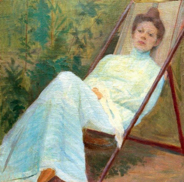Matisse painted this picture, using oil on canvas, of a woman at Antibes at some point in his career. Look at how he builds form with pure colour. It’s a kind of tiling, a mosaic of brushstrokes. He’s almost knitting the figure into existence. The brushwork is all about leaving a visible trace. You can see how the paint is applied, stroke by stroke, each one a little decision. He uses a really light palette, mostly blues, pinks, and off-whites. The paint isn't too thick but the gestures are loaded with visual information. Notice the way he scumbles blues and greens around the hem of the woman's white dress, little jabs and flicks. Matisse had a really long career, and it’s funny to see him working a bit like Bonnard here. It feels like a conversation across time. Painting is always a kind of puzzle, and the best paintings are the ones that keep some things secret.