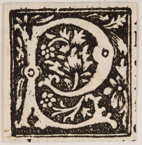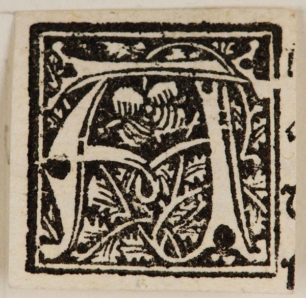 Editor: This is a woodcut, “Initial N,” by an anonymous artist. It looks medieval. I’m struck by how the stark black and white creates such a bold statement. What can you tell me about its cultural significance? Curator: These initial letters were originally used to mark the beginning of chapters in printed books, giving prominence to text. How do you think access to books, and therefore literacy, shaped society at the time? Editor: That’s fascinating. It makes me think about how something as simple as letter design can signify shifts in knowledge and power. Curator: Exactly! It's interesting to consider the democratization of knowledge that was enabled by this technology.