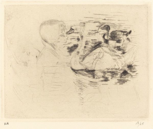 Berthe Morisot made this drypoint print, Swan and Duck, with portraits of Julie, in France sometime in the late 19th century. It depicts her daughter Julie Manet along with the birds in a scene reminiscent of leisure and domesticity. Looking closely, the scene's informality and the soft sketch-like lines are typical of the Impressionists, who often represented the everyday lives of the rising middle class. Yet, Morisot's art diverges from her peers. As a female artist within a male-dominated art world, she often focused on the interior lives of women and the intimate bonds of family, challenging the norms of the time. To more fully understand Morisot, consider her role in the Impressionist movement and consult historical documents such as letters, exhibition reviews, and family archives. It's through understanding this social and institutional context that we can truly appreciate the nuance and quiet rebelliousness of her vision.