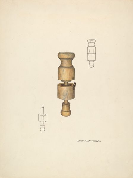 Editor: This is Walter W. Jennings' "Bed Posts," dating to around 1936. It appears to be a drawing with watercolor on paper, depicting two detailed posts, presumably for a bed. What strikes me is the contrast between the ornate "head" post and the simpler "foot" post. What can you tell me about it? Curator: These aren't just bedposts; they're vessels of cultural memory. Consider the "head" post. What stories do those carved details whisper of tradition, perhaps a specific historical style, a vernacular language rendered in wood? Editor: It looks almost like...Gothic revival maybe? But simplified. The foot, though, is far more utilitarian, almost modern in its plainness. Curator: Precisely! And how does that tension – the ornamental versus the functional – reflect the evolving roles of the bedroom itself? Was it moving from a space of formal reception to one of private retreat? What symbolic meaning did beds hold? Editor: A place of birth, death, dreams... beginnings and ends. It’s funny, focusing so intently on these functional objects. Curator: They are potent symbols. The bed, a stage for life's most intimate acts, represented societal values about family and private space. And the differing ornamentation? It may suggest changing societal values about domestic display. Can you feel that weight of history within those crafted forms? Editor: Definitely! I hadn't considered how much cultural meaning could be embedded even in something as simple as a bedpost. It really opens up the way I see design. Curator: Indeed. Every detail resonates with cultural memory if you know how to listen.