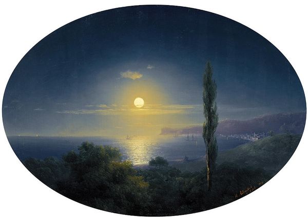 Curator: This work by J.C. Dahl, completed around 1820, presents a view of the landscape from the hills above Castellamare at Naples. It's oil on canvas, demonstrating Dahl's keen interest in capturing atmospheric effects en plein air. Editor: It's quite subdued, almost melancholic. The haze and soft lighting lend a sense of mystery to the city nestled by the sea. What I notice most are the visible brushstrokes—a direct trace of the artist’s hand and intention, of labor enacted to portray something truly present in life. Curator: Absolutely. And while the atmospheric perspective is crucial, we need to examine how it places us, the viewers, in relation to the scene. This isn't just a beautiful landscape; it's about the relationship between the natural world and burgeoning urban spaces. We must question what a privileged painter, in 1820, sees when he gazes at Naples, right? Consider the sociopolitical tensions simmering beneath the surface of such apparently 'idyllic' scenes. Editor: Precisely. Look at the pigment choices. The hazy blue is mixed to resemble smoke or fog, and if you follow it, it directly calls out to question who produces this element, where do these emissions come from? The work itself seems to speak to how the labor practices involved in industrial manufacturing directly lead to the kind of environmental obfuscation seen within the art. Curator: Moreover, the lone figure on the path introduces another layer. Is he a shepherd, a traveler, or something else entirely? How does this isolated figure reinforce or challenge our reading of nature in the frame? Is the material consumption visible elsewhere affecting him as well? Editor: He seems separated and apart. As the painting’s focal point he represents both possibility, perhaps setting forth to embark toward a new labor; however, he can also represent alienation. The way his isolation contrasts with the distant city tells us so much about work as it becomes visible to us in the urban environment and in romantic terms! The application of pigment tells this tale in a compelling way. Curator: Considering Dahl's own background and the broader context of Romanticism, his work becomes an interesting commentary on class, industrialisation, and the perception of nature and those who would engage and interact with it. Editor: By attending to Dahl’s process we begin to truly appreciate the complexity and layers within something initially seeming so "simple." Thanks to Dahl's choice of oils and canvas, combined with a particular composition, labor issues emerge through a mist!