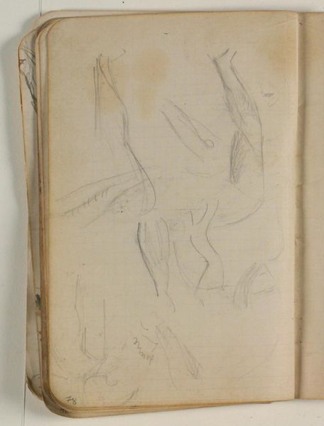 Editor: Here we have "Skitser af dyreskelet," or "Sketches of Animal Skeletons," by Niels Larsen Stevns, created sometime between 1864 and 1941. It’s a pencil and charcoal drawing on paper. It's really spare, almost clinical. I'm curious, what elements jump out at you when you look at this piece? Curator: Well, first I’m drawn to the stark contrast. The emptiness of the left sheet creates a void which emphasizes the linear complexity of the sketches on the right. Editor: It’s true, the contrast is impossible to miss. How does the medium contribute to the visual effect? Curator: The combined use of pencil and charcoal allows Stevns to explore different depths of tone, and linear definition. The skeletal studies showcase the academic study of anatomy. It seems a formal exploration of structure and form, more than anything narrative or expressive. Note how line quality and varying densities contribute to the overall compositional balance, or imbalance, if you will. Editor: I see what you mean. It's less about emotional expression and more about the interplay of lines, forms and shapes. The precision feels almost scientific. So, would you say the absence of background details supports the idea that he was focusing on the skeletal structure? Curator: Precisely! All that exists in the piece is positive space. Its reduction encourages a focused consideration on the bones themselves. Think about what it would have been like to meticulously depict these pieces as an exercise, how would the light move around it. Editor: I never thought about that; it does make sense when considering light. Thank you! I will remember the concept of considering lines and negative space. Curator: Indeed. Looking closer at intrinsic properties gives so much insight!