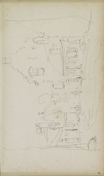 Willem Koekkoek made this drawing of a house with a pointed roof and a tree in the 19th century. The composition is a network of delicate lines, a minimalist exploration of form. Notice how the lines coalesce to sketch a pitched-roof house, its windows defined by stark rectangles. To the left, the tree is barely there, a ghost of nature. The simplicity evokes a sense of quiet introspection. Here, Koekkoek engages with a formalist tradition but also pushes against it. It's not just about the purity of line or the balance of composition. It also destabilizes our expectations. There is a semantic interplay: a house, a tree, and the barest suggestion of life. Look again at the lines, so simple, so stark. These lines act as cultural signs and challenge us to find meaning. Art is not a fixed object but a dynamic process of understanding.