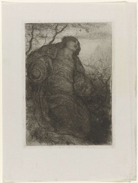 Matthijs Maris created this etching titled 'Vrouw in een landschap' – or 'Woman in a Landscape' – sometime during his career in the late 19th century. Maris was part of the Hague School, a group of Dutch artists who sought to capture the atmosphere of the Dutch landscape, often with a melancholic or dreamlike quality. In this context, the woman’s figure blends with the landscape, blurring the line between the figure and the earth, creating a sense of unity, but also of possible oppression. Is the figure grounded, or trapped? Maris lived a life of relative isolation, and he invested his works with a deep personal emotion. This piece invites us to reflect on how women, both in art and society, have historically been represented as being one with nature, and consider the implications of such representations.