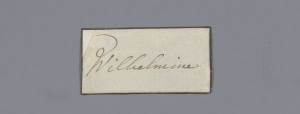 Curator: Here we have a document simply titled "Document", made sometime between 1800 and 1843. It's a drawing using ink on paper, and the script is the signature of Willem I, King of the Netherlands. Editor: Hmm, it's so minimal. Almost…elegant. Like a secret whispered on a calling card. It feels fragile, exposed, yet authoritative all at once. Just one elegant squiggle. What can you tell me about this guy Willem and what his John Hancock reveals? Curator: Well, Willem I came to power after a period of French rule and the dissolution of the Dutch Republic, which marks him as a figure caught between the old order and emerging modern nation-states. This stylized text is more than a signature, but a symbolic marker of sovereignty and authority. It represents a transition. Editor: Transition...I see it. That swirling script—it's like the ink itself is searching for definition, wanting to break free, to dance, but then it’s anchored by the long flourish underneath, as though reined in, kept in check by duty, but still hinting at grand romantic gestures. A nation still trying to define its boundaries! Am I projecting? Curator: Perhaps, but I think you are onto something. Considering the context of post-revolutionary Europe, the focus shifts onto individuality, a period characterized by rising nationalism and colonialism. The signature, therefore, transcends its practical purpose, embodying political and societal dynamics, gender norms, class structures, and aspirations tied to imperial power. Editor: The weight of that history—on a single signature! I suddenly feel almost sorry for him and that very ornate ‘W’ bearing all the expectations! Makes you wonder about all the things we imprint on such a small thing… Curator: Precisely! It really underscores that what looks to be straightforward or uncomplicated can offer up complex questions, revealing unexpected political, economic and cultural realities that continue to resonate with us today. Editor: It also reminds me to think twice before I just scribble on the next delivery form that comes my way. A single ink stroke says a lot, maybe more than we thought!