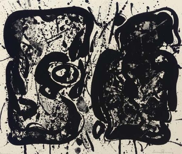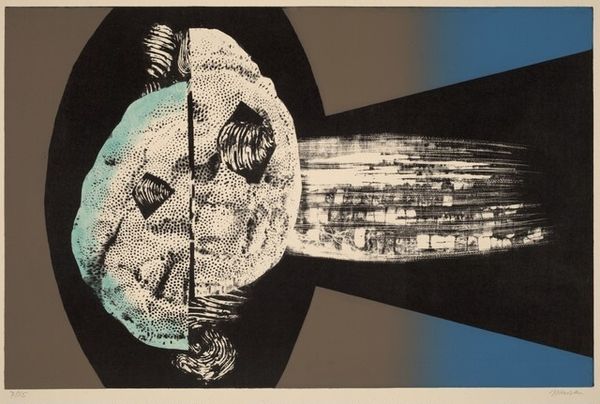 Curator: Looking at "Lovers (Bone Music)," an acrylic on canvas created by Piroska Szanto in 1970, my immediate reaction is drawn to the dynamism conveyed through such stark colors. What strikes you first about the artwork? Editor: The title really informs my experience here. There's something spectral about the composition; I see interlocking figures rendered almost like anatomical drawings, yet they resonate with human warmth, challenging the notion that skeletons can only be terrifying. Curator: Precisely. It's compelling how Szanto integrates elements of both neo-expressionism and abstract expressionism. While formally abstract, the underlying erotic theme is palpable, pointing toward an exploration of bodies under pressure. It seems this painting arose within complex cultural frameworks for erotic art. Editor: I'm curious about this 'bone music'. This visual language of bone evokes a primitive symbolism – a nod perhaps to the human form's fragility, and in counterpoint to desire and eroticism; and a powerful representation of primal connection across cultures and generations. Are there particular resonances in Hungarian art or folklore? Curator: Hungarian folklore often blends pagan and Christian symbols. While I can't connect this directly to Hungarian lore, I notice a convergence of modern expressionism with archaic iconography. The era – the 1970s – was politically turbulent; I speculate the piece presents a bold statement during heightened censorship of the body. Editor: Absolutely. In the realm of erotic art, a society’s rules always whisper through the artist's visual grammar. Looking closely, notice how some white lines accentuate certain... well, suggestive curves. Beyond simple portrayal, these lines feel almost celebratory, challenging restrictive definitions of the human form, especially during the Eastern Bloc era. Curator: What seems most evocative for me is how Szanto challenges not just sexual mores of the era, but traditional gender roles through these semi-abstract figures; they offer us both ambiguity and agency within what otherwise may feel a stark and uncompromising narrative. Editor: For me, I'll remember "Lovers (Bone Music)" as an encounter. The visual echoes continue, inviting reflections on how symbols – especially erotic ones - remain vivid records across cultural shifts and individual identities. A true piece for both contemplation, and hopefully celebration.
