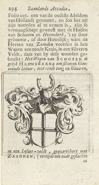 Curator: This is Gaspar Bouttats' engraving from 1679, "Tegenspoed wordt gezonden door God," or "Adversity is sent by God." It's currently held in the Rijksmuseum collection. Editor: My first impression is of stark contrast and carefully delineated space. The frame really draws the eye in to the unsettling scene. Curator: Indeed. Note the balanced composition, bisected horizontally. Below, a packed crowd of spectators frames the main scene, with their gazes, drawing our eyes, toward the central subject matter. Above them is what seems like some sort of justice proceeding, perhaps. The stark contrasts are achieved through the engraving itself, and what we can deduce of its materiality in stark contrast with that dark central scene. Editor: Yes, the density of figures gives an almost claustrophobic sense to the print. The central figures on that scaffolding draw all of my attention: a man being whipped, the punishing officer with the reeds, the crouching figure with what appears to be a branding iron or perhaps cauterizing agent heating in a brazier. The title and accompanying text would suggest that it depicts earthly adversity being dispensed with divine permission? Curator: Precisely. The "SINNE-BEELDT," meaning something akin to emblematic picture, reinforces the message alongside the text. The architectural components further establish the structure of divine intent made physical on earth: Observe the symmetry, the lines repeating as they fade back into the perspectival space—its rigorous lines of organization speak to something like structure of thought itself. Editor: The symbols definitely carry weight. I read it as a commentary on social hierarchy and divine judgment. What's interesting to me is the emotional ambiguity captured within the composition: Do we sympathize with the figure being punished, or are we meant to see it as deserved divine retribution? The expressions on the faces of the figures around would tend toward reinforcing an expectation that such is deserved—social consent toward the justice. Curator: And look at the bordering frame itself. Ovoid, adorned with vegetation—the organic and classical—subscribing to the structures and ideas and forms circulating in Bouttats’ era. The engraving as a totality certainly achieves a synthesis, both visually and conceptually, creating an artwork whose lines work to reinforce the structure itself. Editor: Pondering how historical prints like these shaped understandings of morality and power is rather chilling. It forces us to confront how symbols are never neutral; they carry histories and influence our perceptions—an image is never merely formal, of course.